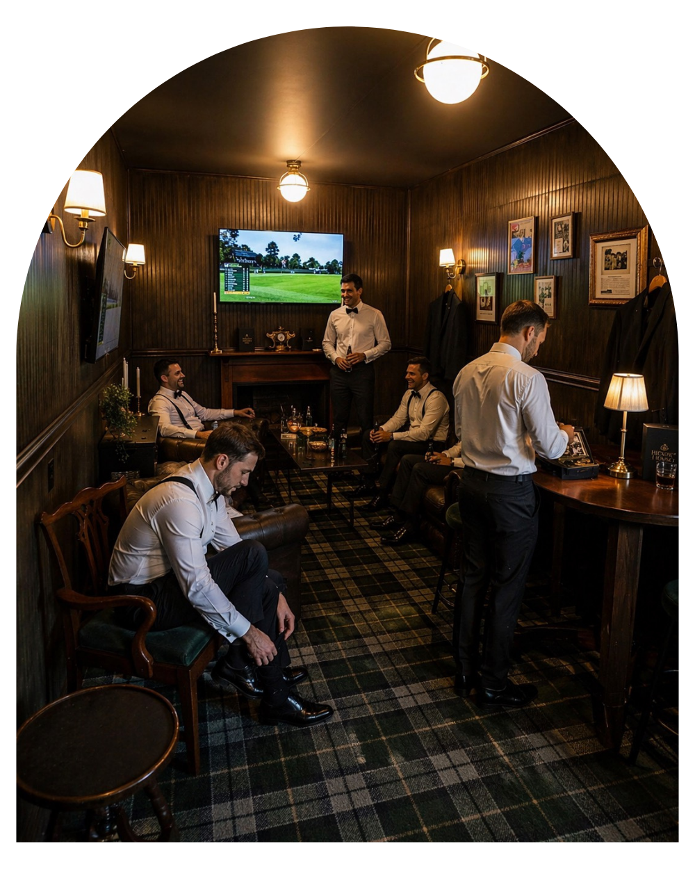 A relaxed place to get ready and spend time together. Morning access before the ceremony. Coffee, light food, or drinks. Private use of the space.